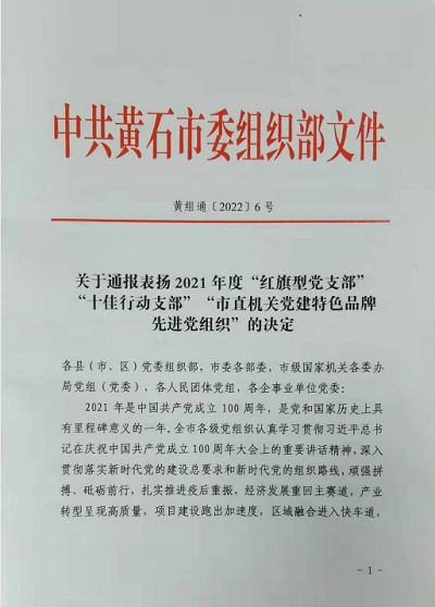近日,黄石市委组织部下发通报,表彰2021年度全市先进党组织,星空(中国)官方理工学部学生党支部被评为黄石市2021年度“红旗型”党支部。