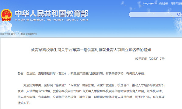 教育部第一期供需对接就业育人项目星空网页版立项名单