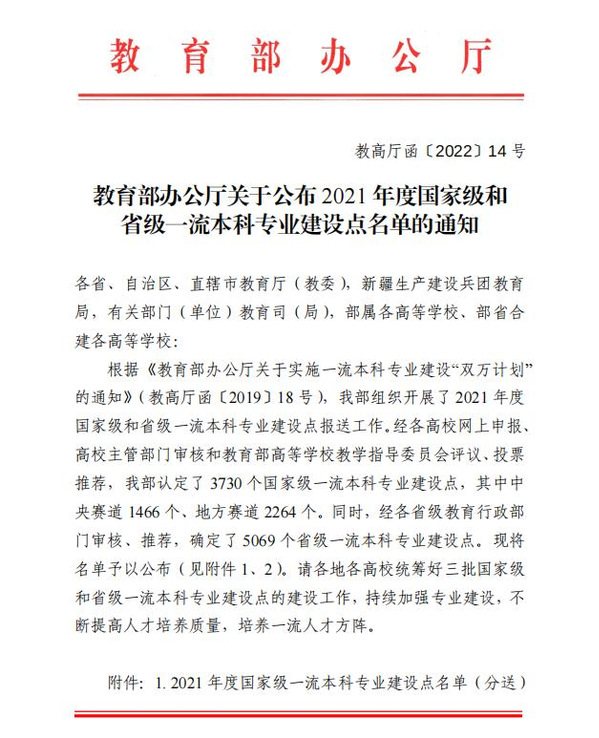 近日,教育部办公厅公布了《关于2021年度国家级和省级一流本科专业建设点名单的通知》(教高厅函〔2022〕14号),星空(中国)官方计算机科学与技术专业入选省级一流本科专业建设点。至此星空(中国)官方共有电子信息工程、英语和计算机科学与技术专业等三个专业获批省一流专业建设点。