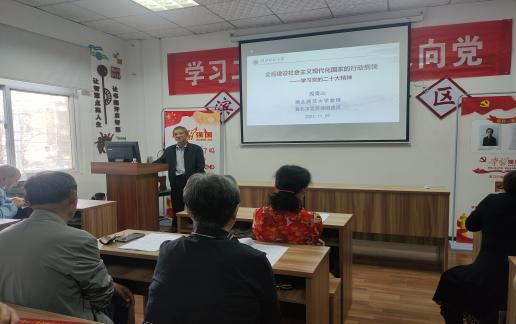 本网讯 为推动党的二十大精神进社区,11月9日下午,星空(中国)官方马克思主义学部教授、黄石市委宣讲团成员周青山同志到湖滨社区宣讲党的二十大精神---全面建设社会主义现代化国家的行动纲领。