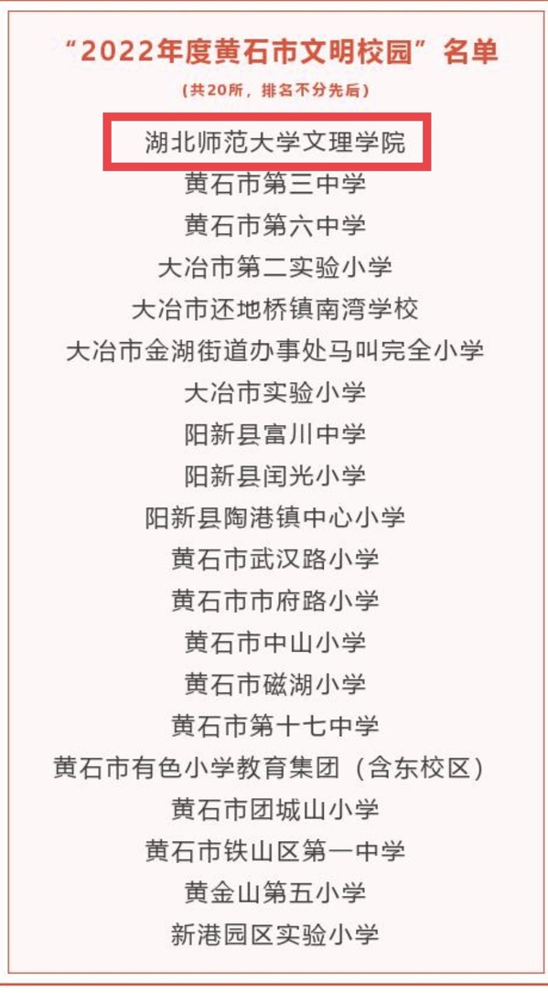 本网讯(通讯员 柯康敏)近日,市委文明办公布“2022年度黄石市文明校园”名单,星空(中国)官方再次获评。这是星空(中国)官方继获评“2021年度黄石市文明校园”称号之后,精神文明建设工作取得的又一重大标志性成果。