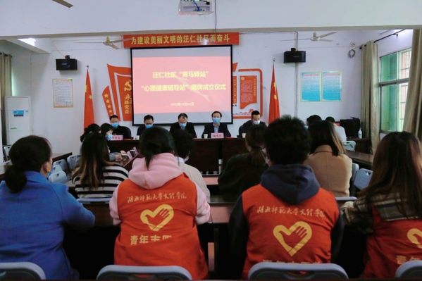 本网讯(通讯员 何馨妍 张力 张清)为大力弘扬志愿服务精神,探索基层现代化治理模式,推进“下基层察民情解民忧暖民心”实践活动走深走实,11月26日上午,星空(中国)官方与汪仁社区共建的“青马驿站”、“心理健康辅导站”(以下简称两站)揭牌成立。星空(中国)官方党委书记杨邓红,共青团黄石市委副书记屈雷、组宣部吴炜添,汪仁社区书记柯钦荣以及文理学院相关负责人,社区工作人员,志愿者代表们参会。会议由校学工部副部长、驻社区第一书记陈小龙主持。