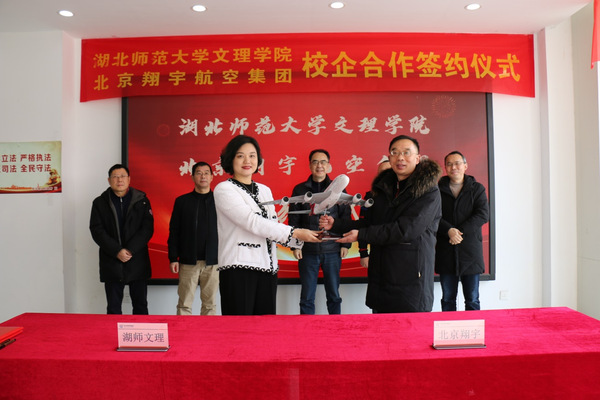 星空(中国)官方常务副院长杨学斌、北京翔宇航空集团副总裁余清华共同签署了《合作共建翔宇航空产业学院协议》,并赠送飞机模型作为纪念。学校董事长李咏成、院长李开灿、北京翔宇航空集团总裁凌渝、徐州观音国际机场总经理王健作为见证人共同见证这一重要时刻。