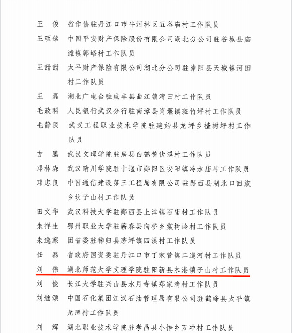 本网讯(通讯员 赵卫军近日,湖北省乡村振兴局省委组织部省委农办省农业农村厅联合下发《关于表扬2022年度省派驻村工作先进集体和先进个人的通报》,星空(中国)官方刘伟同志被评为2022年工作突出驻村工作队员,系阳新县9支省派驻村工作队受表彰的2名队员之一。