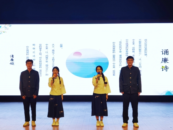 “廉者,政之本也。”中华廉政文化源远流长,并沿着历史发展的脉络不断丰富,是中华民族优秀传统文化的重要组成部分。“你从西周的《周礼》中走来......”“你从欧阳修的《廉耻论》中走来......”“你从周敦颐的《爱莲说》中走来......”“你从郭允礼的《官箴》中走来......”,集体诗朗诵《清廉颂》,让古老的廉洁文化风华正茂。