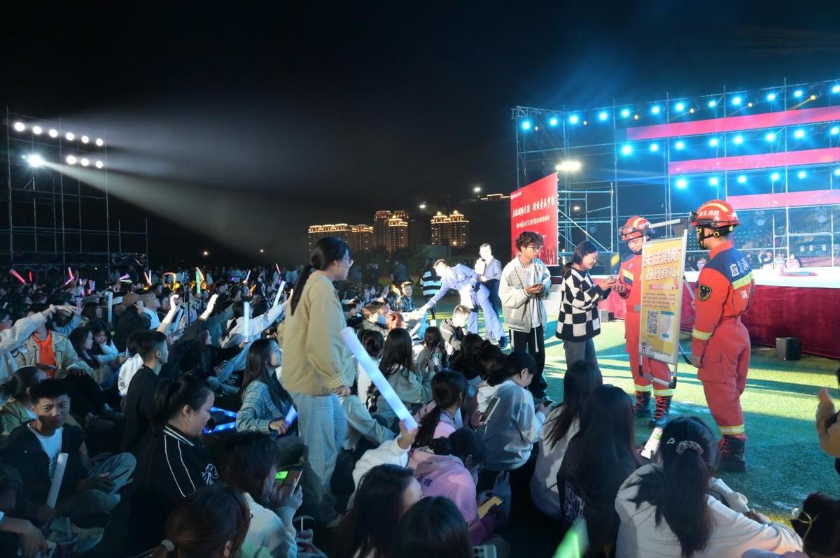 10月8日晚,星空网页版的田径场上热闹非凡。黄石市消防救援支队开发区·铁山区大队的“蓝朋友”们走进这里,和6000余名青年大学生们共享了一场精彩绝伦的迎新晚会,消防员们自编自导的节目中穿插了诸多消防安全知识,以表演的形式传递给学生。