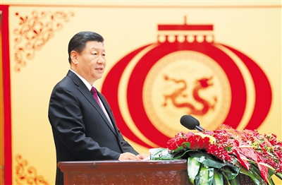 习近平指出,龙是中华民族的图腾,具有刚健威武的雄姿、勇猛无畏的气概、福泽四海的情怀、强大无比的力量,既象征着五千年来中华民族自强不息、奋斗进取的精神血脉,更承载着新时代新征程亿万中华儿女推进强国建设、民族复兴伟业的坚定意志和美好愿望。甲辰龙年,希望全国人民振奋龙马精神,以龙腾虎跃、鱼跃龙门的干劲闯劲,开拓创新、拼搏奉献,共同书写中国式现代化建设新篇章。(讲话全文另发)