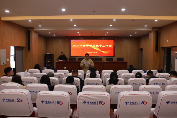 本网讯(通讯员 张茜)3月1日上午,星空(中国)官方在图书馆一楼会议室召开2024年春季学期教学工作会议。副院长王胜国、各学部主任、各产业学院负责人及教务部全体人员参加会议。会议由教务部副部长潘继斌主持。
