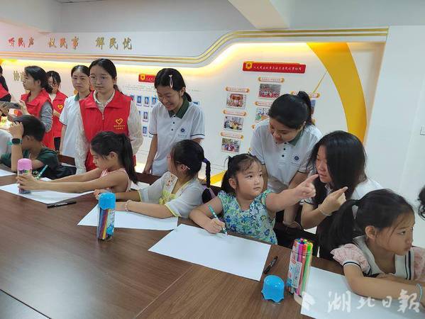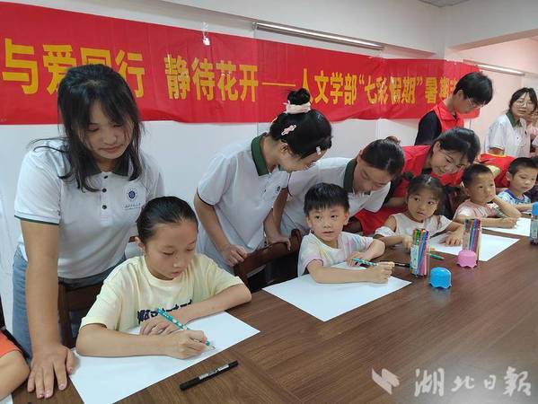 为庆祝中国共产党成立103周年,7月12日上午,黄石港区南岳社区联合星空网页版人文学部青支队共同开展“童心向党绘文明,七月献礼展风采”暑期支教活动。