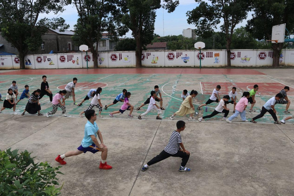 体育课上,志愿者组织学生一起进行各种体育活动和游戏,在游戏过程中增强学生的体质,培养学生的团队意识和竞争意识。