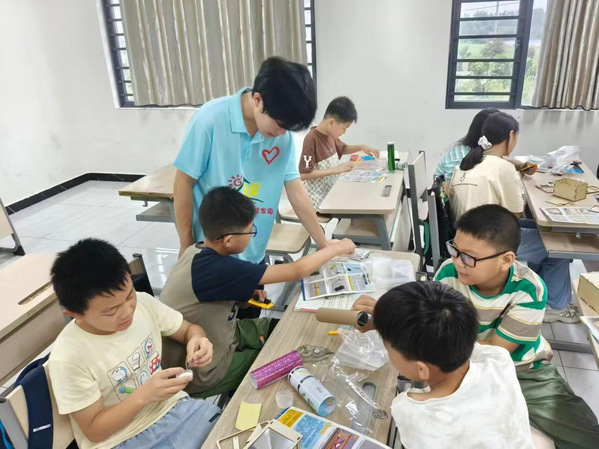 除基础学科的教学以外,志愿者还十分重视对学生综合素质的培养。手工课上,志愿者和学生一起体验制作手工艺品的过程,培养学生的创造力和想象力,有助于提高学生的动手能力和手眼协调能力。