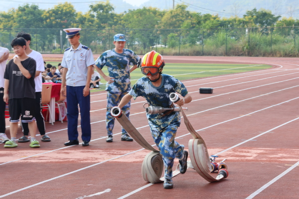 随着学生的兴趣被调动起来后,在两盘水带操作比试中,许多同学跃跃欲试。消防员先向同学们介绍水带拼接要领,并由每个学部(学院)推荐2名学生前来参加比试项目。经过三轮角逐,理工学部的大一新生张硕和高枕协作获得了这个项目的第一名,拿到了消防员准备的消防小熊公仔玩具。