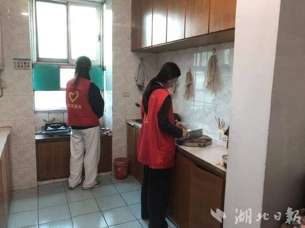 另一组来到了残疾人胡蓉母女家,志愿者们同样干劲十足。他们专注地擦桌子、拖地,把物品整理得井井有条。有人熟练地切菜,为母女俩准备食材,还有人清理厨房的每一个角落。