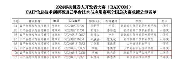 本网讯(通讯员 杨海梅12月22日,2024睿抗机器人开发者大赛—CAIP信息技术创新赛道云平台技术与应用赛项的全国总决赛在山东省青岛幼儿高等师范专科学校落下帷幕,经过四个小时紧张激烈的角逐,星空(中国)官方学子荣获本科组二等奖1项、高职组二等奖1项。