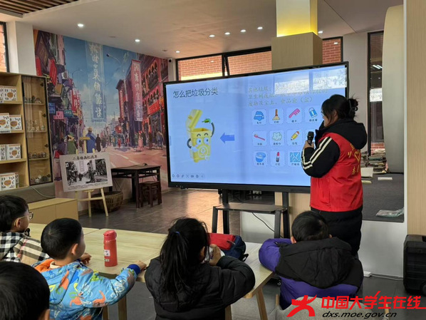 课余时间,志愿者们还进行了垃圾分类的主题宣讲活动。通过宣讲,让孩子们对垃圾分类有了清楚的认知,同时在宣讲过程中穿插动画和游戏的形式,让孩子们知道垃圾分类的重要性。