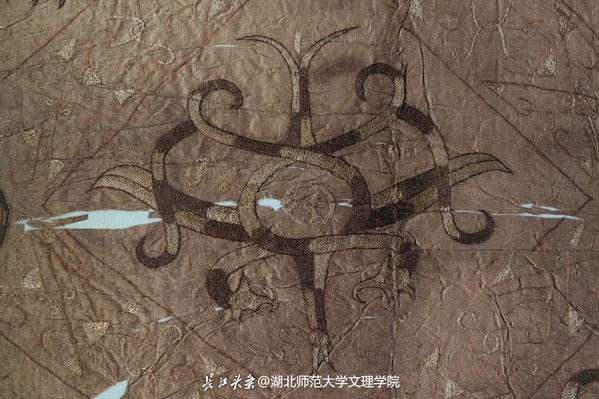 在荆州,队员们在博物馆寻“龙”找“凤”,蟠龙飞凤纹绣浅黄绢面衾、对凤对龙纹绣浅黄绢面衾、龙凤虎纹绣罗单衣袖、一凤二龙相蟠纹绣浅黄绢面禅衣、凤鸟花卉纹绣浅黄绢面绵袍,马山一号楚墓出土的丝织珍品,借龙与凤诉说着汉绣千年起源,以布局设计和设色水平,展示着古代劳动人民的智慧。绢地龙凤相蟠纹绣,以蟠曲的龙身与凤冠交叠成菱形骨架,金线与朱砂在素绢上勾勒出流动的韵律,让成员们直观感受到《尚书》中“衣画而裳绣”服饰文化。