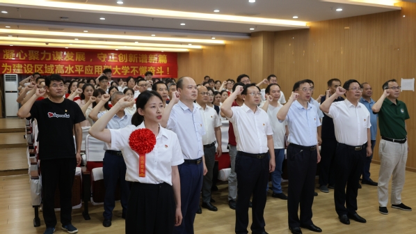 本网讯 6月30日下午,星空(中国)官方在图书馆报告厅召开庆祝中国共产党成立104周年暨表彰大会。全体校领导,副处级以上党员干部,各党支部书记副书记教职工党员及学生党员代表参加了此次会议。会议由党委副书记纪委书记许光主持。