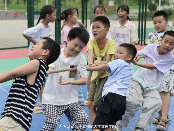 除日常教学外,支教团还组织了一系列主题鲜明、内容充实的活动。“梦想分享会”上,孩子们认真地在彩纸上写下“想当科学家”“要做老师”的愿望,并勇敢地站上台分享,志愿者一一给予鼓励和拥抱,为他们插上追梦的翅膀。“运动实践”课志愿者带领孩子们一起走出教室,孩子们在协作中增进默契,呐喊助威声中收获了友谊与快乐。“手工作品”课上,废旧材料变身成小飞机和环保袋,一件件别致作品闪耀着孩子们惊人的想象和创造力。红色精神宣讲课中,志愿者动情地讲述英雄事迹,孩子们听得入神,眼中充满崇敬,爱国主义的种子悄然扎根心田。这些活动不仅极大丰富了孩子们的假期生活,更让他们深切感受到了来自哥哥姐姐们的温暖与关怀。