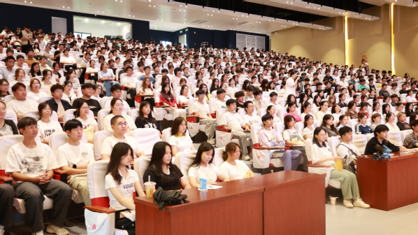 线下主会场设在学术交流中心,线上通过“星空网页版”视频号同步直播,实现全覆盖。有观看直播的新生说:“虽然没能到现场,但直播效果很好,还能发弹幕和同学交流。”