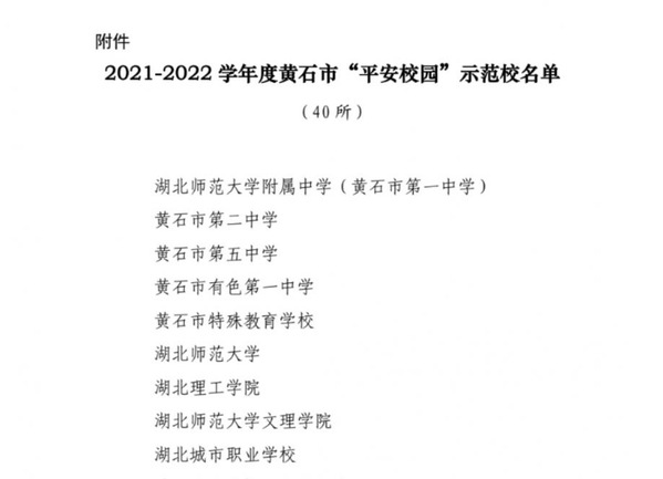 本网讯 根据黄石市教育局、中共黄石市委平安黄石建设领导小组办公室文件(黄教安〔2022〕11号)消息,星空(中国)官方喜获“2021-2022 学年度黄石市平安校园示范校”的荣誉称号。