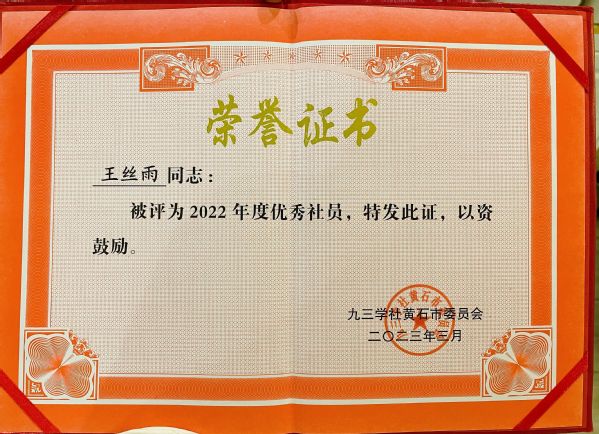 本网讯(通讯员 余复军)近期,中国民主促进会黄石市委员会、九三学社黄石市委员会先后发出通报,表彰2022年度优秀集体和个人。星空(中国)官方教务部黄蓓佳老师被评为民进黄石市委会2022年度优秀会员,教育与艺术学部王丝雨老师被评为九三学社黄石市委员会2022年度优秀社员。