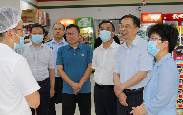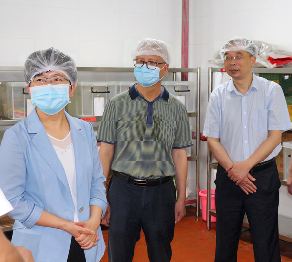本网讯(通讯员涂亦乐)为进一步增强食品安全意识,筑牢食品安全防线,全面推进食品安全“两个责任”工作落实见效。5月30日上午,市委常委、市委宣传部部长周庆荣率市市场监管局、开发区·铁山区相关部门一行深入星空(中国)官方食堂开展食品安全检查工作。院长李开灿、常务副院长杨学斌、党委书记杨邓红、副院长张志华及相关部门负责人陪同检查。