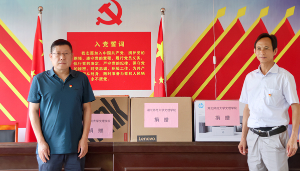 在村党群活动中心,杨学斌代表学校向子山村捐赠5万元乡村振兴专项资金,并向子山村卫生室捐赠办公电脑和打印机。