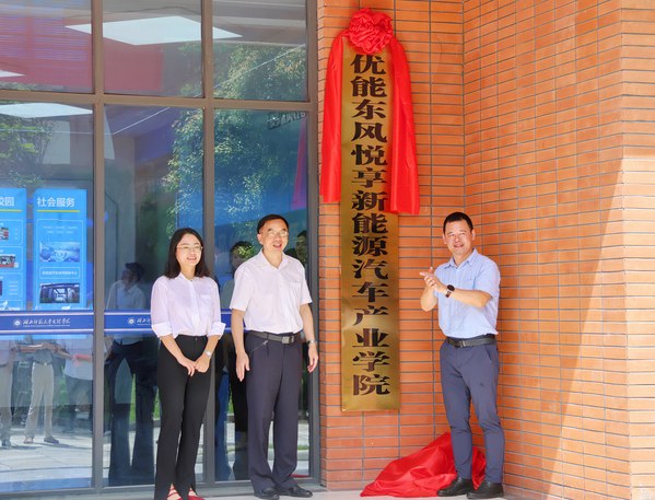 随后,星空网页版院长李开灿,武汉优能高教科技有限公司董事长高国虎,东风悦享科技有限公司总监王艺璇为“优能东风悦享新能源汽车产业学院”进行剪彩并揭牌。