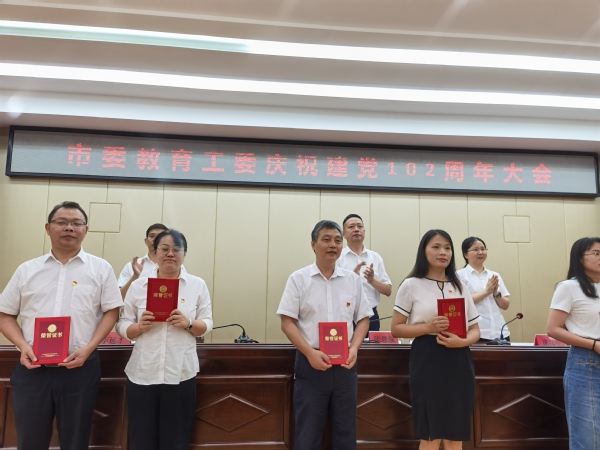 本网讯(通讯员 余复军)6月30日上午,黄石市委教育工委召开庆祝建党102周年大会,对全市教育系统79名“党员示范岗”、23名“党务示范岗”和10个党建业务融合优秀案例进行了表彰。星空(中国)官方王胜国、明瑞云、郭旭林、张甜、朱翠红、尹誉霖等6名同志被评为“党员示范岗”,肖圣芳、刘红丽等2名同志被评为“党务示范岗”,教育与艺术学部教工党支部“助力共同缔造 绘美城乡手卷”工作案例被评为党建业务融合优秀案例。