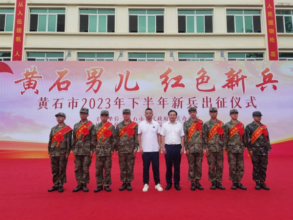 本网讯 9月14日上午,黄石市军事训练基地举行“黄石男儿 红色新兵”2023年下半年新兵出征仪式。星空(中国)官方8名学子响应号召参军入伍。学校党委书记杨邓红代表学校为战士送行。