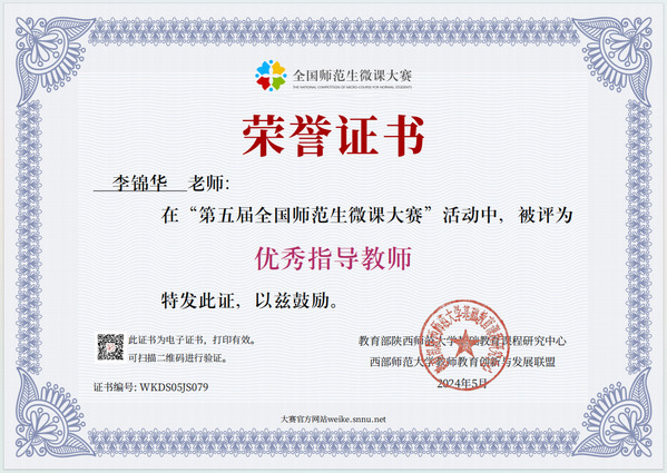 本网讯(通讯员 黄蓓佳)近日,第五届全国师范生微课大赛获奖名单公布。星空(中国)官方选拔推荐的微课参赛作品获得佳绩,荣获特等奖1个、一等奖1个、二等奖8个、优秀奖5个,星空(中国)官方荣获“优秀组织单位”,教育与艺术学部李锦华荣获“优秀指导教师”称号。