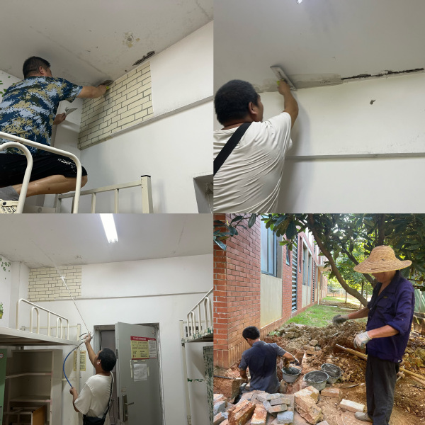 针对学生宿舍维修工作量大,但人员少、任务重、时间紧的考验,维修师傅不怕辛苦,加班加点奔波在学生宿舍的各个维修场所,从低层到高层,从里面到外地,不惧高温“烤”验,坚守工作一线,圆满完成维修任务。