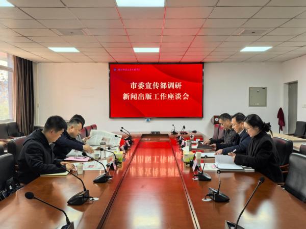 本网讯 12月18日下午,市委宣传部副部长、二级调研员艾永晴,市委宣传部新闻出版和电影管理科负责人曹小卉,市委宣传部办公室四级主任科员宋子健一行来校,就高校新闻出版工作召开专题调研座谈会。党委书记杨邓红,党委宣传部相关负责人参加座谈会。