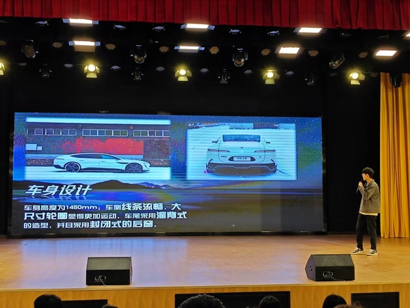 在前期初赛和复赛的基础上,共11人进入决赛。决赛话题为介绍自己喜欢的新能源汽车,参赛者从新能源汽车发展史、性能、性价比、推荐原因等多方面展开介绍,尽情展现个人对新能源汽车的了解与热爱。评委老师针对学生PPT制作、演讲能力、应变能力等方面进行打分。最终,人工智能技术2402班邱雨荷获得第一名。
