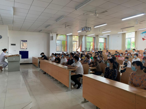 为扎实做好2020届毕业生返校工作,更好地提升一线工作人员的防控能力,正确开展防疫工作,保障一线工作人员及全校师生安全,最大程度做好疫情防控常态化背景下的各项工作。6月5日上午,后勤保卫部组织了新冠肺炎防疫知识培训,邀请市中心医院驻学校任昌慧护士为保安、保洁、宿管、食堂楼层经理和后勤保卫部人员等进行了防疫知识培训。