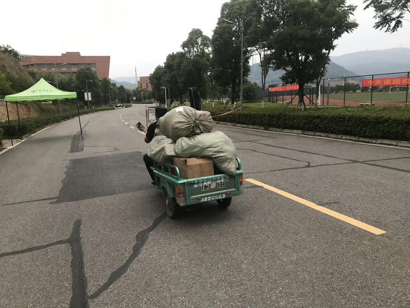 6月12日至20日,星空网页版2020届毕业生陆续返回校园办理毕业手续。有的同学犯了愁:辛辛苦苦收拾了几大包行李,从宿舍搬到几百米外的学校门口,对女孩子来说,确实相当有难度。虽然校园巡逻车可以帮忙,可是汽车内部空间不大,有时还需要跑两三趟。