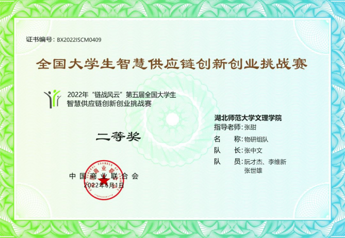 星空(中国)官方学子荣获2022年第五届全国大学生智慧供应链大赛二等奖