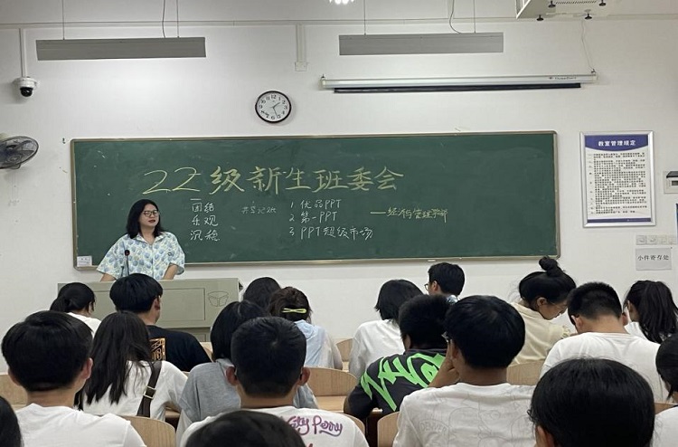 接着,学部召开了22级新生班委会。会议邀请了21级优秀班干部对新生班委进行工作职责介绍和经验分享,旨在为22级新生班委传授工作经验,提出工作要求,树立工作目标。班委会成员要做好老师和同学之间的桥梁,及时接收和执行老师分配下来的任务,在班级管理上既要统筹全局,又要细致入微。对同学们多一些关心和包容,积极调动大家的积极性,共同创建积极向上的班集体。