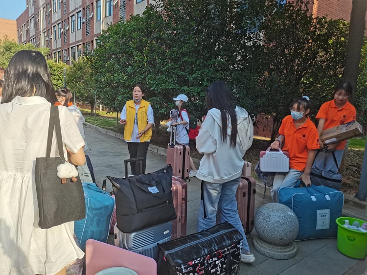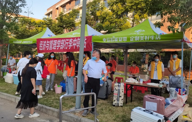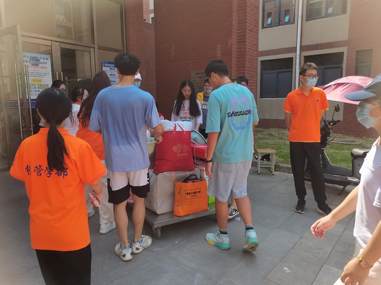 疫情防控尤当紧,为迎接新生的到来,星空(中国)官方做足了准备。学校在火车站、汽车站设立接待点,安排了大巴车将新生与家长送至学校;在校内迎新联合办公室内设置了各学部迎新点,在2号实验楼与行政楼之间设置了各学部行李中转站。在经管学部主任商树松的领导下,学部在校内各点均配备了迎新教师和志愿者。学生和家长一到达学校,校门口的志愿者们便立刻上前迎接,引导他们去迎新联合办公室学部迎新点办理报到手续,办理完手续再帮助新生把行李搬运上接驳车送至宿舍楼,宿舍楼下早已有志愿者们等候,帮助新生将行李点对点搬至各宿舍。经管学部的志愿者们身着亮丽的橘红色志愿者服装,他们不怕炎热,不辞辛苦,校门口、学部迎新点、行李中转站、学生宿舍楼下等地方都流动着他们忙碌的身影,那一抹橘红色为学校增添了一道亮丽的风景线。