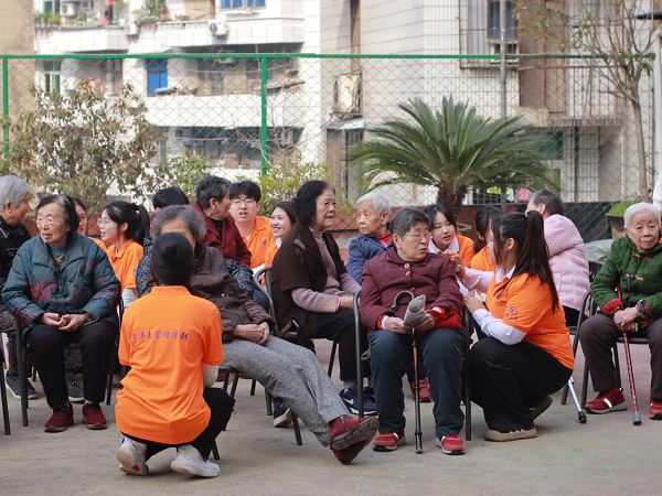 最后,同学们和老人一同表演了经典红歌《团结就是力量》,通过老人们洪亮的声音和亲切的笑容,深深地感受到了老人们真切的情感,也深刻体会到了志愿服务活动的意义。志愿活动结束后大家与老人们合影留念,临近离别时,老人们依依不舍的与同学们挥手告别,同学们启程返校,圆满结束了本次志愿活动。