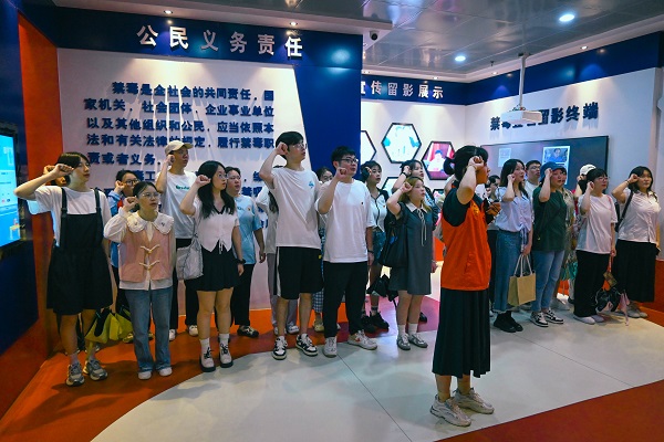 党员同志还通过高科技虚拟现实技术体验了吸毒后可能出现的危险驾驶状态,直观感受毒品带来的生理与心理双重危害,进一步坚定了他们“向毒品说不”的决心。随后的集体宣誓环节,更是将活动推向高潮,一声声铿锵有力的誓言,不仅是对自我行为的约束,也是对未来行动的承诺,彰显出青年党员在禁毒斗争中的坚定立场与使命担当。