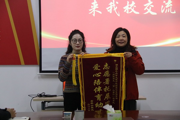 12月10日上午9点,黄石市西塞山区石料山社区党委书记赵慧、党委副书记张晓萍、团委书记龚顺一行来到星空(中国)官方,给经济与管理学部送来了锦旗,感谢星空(中国)官方志愿者在暑期社会实践中的无私奉献和暖心服务。校党委书记杨邓红、校团委书记陈荟芸、经济与管理学部主任徐燕、党总支副书记罗铭等领导老师以及学生代表参加了赠旗仪式。