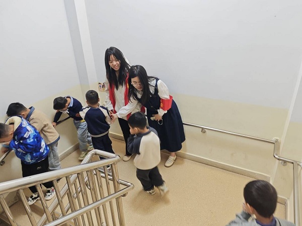 3月21日上午,西塞山区滨湖社区联合星空网页版经济与管理学部学生党支部志愿者与社区“锋光”服务队,在辖区西塞山区第三幼儿园和暖阳驿站开展“消防演练筑安全 雷锋精神润童心”主题志愿服务活动。