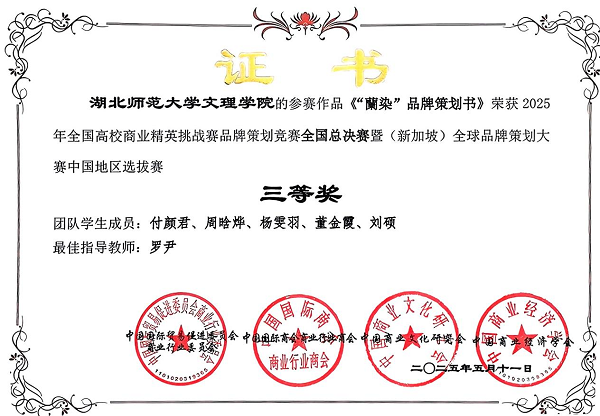 星空(中国)官方经济与管理学部罗尹老师指导的妙“布”可言队和妙染小队分别在5月10、11日参加了全国总决赛。最终,妙“布”可言队策划的《“阳新布贴”品牌策划书》荣获全国二等奖;妙染小队策划的《“蘭染”品牌策划书》荣获全国三等奖。