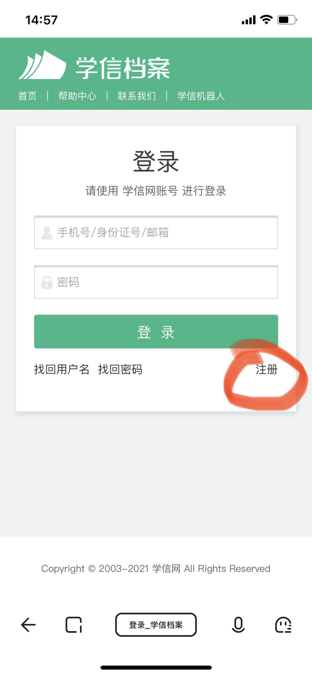 2、点击注册学信网账号: