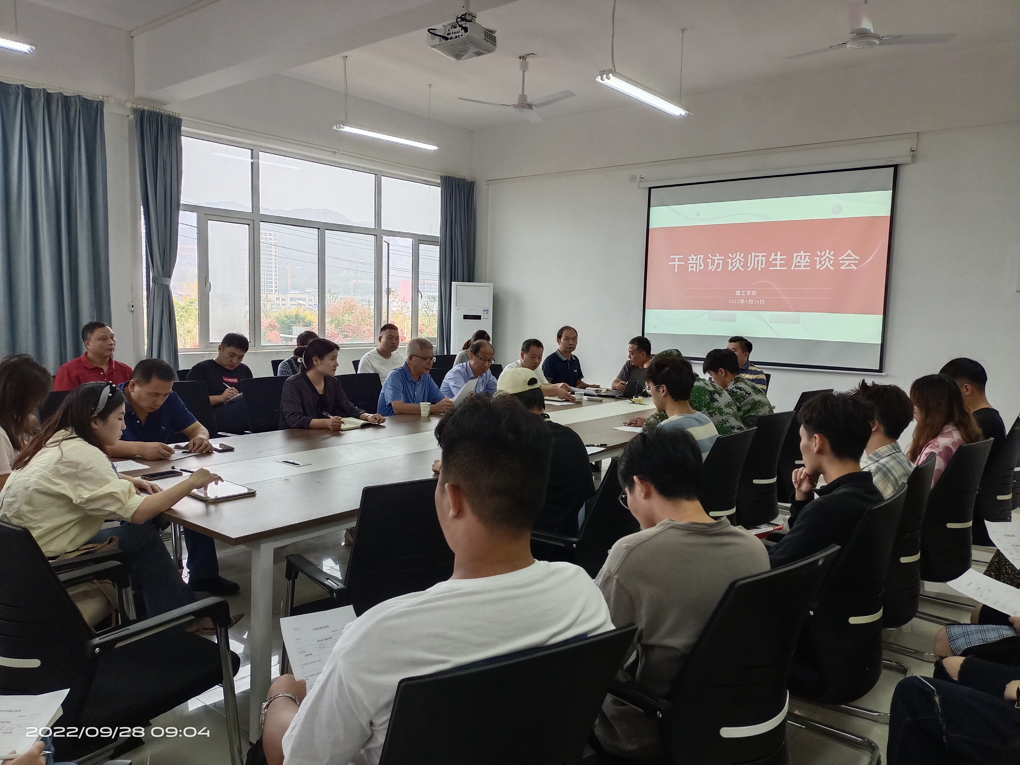 2022年928日上午,在理工学部会议室召开了干部师生访谈座谈会,张志华院长,张少武主任,许涛部长,李小林部长和理工学部访谈领导和被访谈师生参加了此次会议。会上师生对于学校校园环境,教学质量,教材选定,培养方案以及校园设施等多方面提出了意见和建议,张院长和相关部门领导针对师生提出的问题一一解答,并对问题解决方案的进度情况告知师生,让师生安心工作和学习。