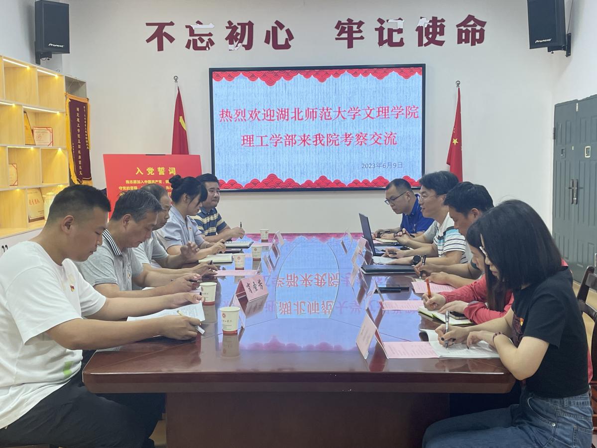 为进一步推进理工学部学生党支部支部创建工作,学先进赶先进,2023年6月9日,理工学部主任傅朝金、党总支副书记肖圣芳一行五人前往湖北理工学院土木建筑工程学院学习样板支部建设的工作经验。