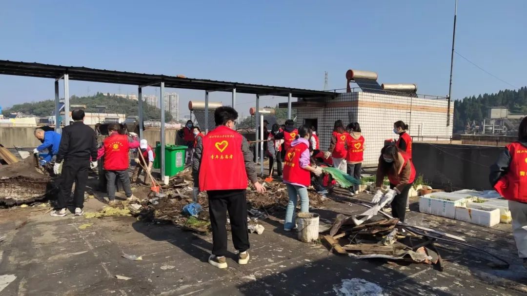 理工学部志愿者们挥汗如雨数小时,让废弃家具、建筑废料等楼顶"顽疾"彻底消失。分类码放的再生资源、光洁如新的水泥地面。"携手志愿,清洁社区"这八个字不仅是行动纲领,更是每位居民共建家园的宣言。当扫帚与铁锹碰撞出和谐的节奏,当汗水顺着笑颜滴落成奉献的诗行,我们正用实际行动诠释:美好社区不是等来的风景,而是用双手编织的幸福图腾。让我们继续携手,让文明之花绽放在每寸土地,让互助的温度流淌进每扇窗棂!