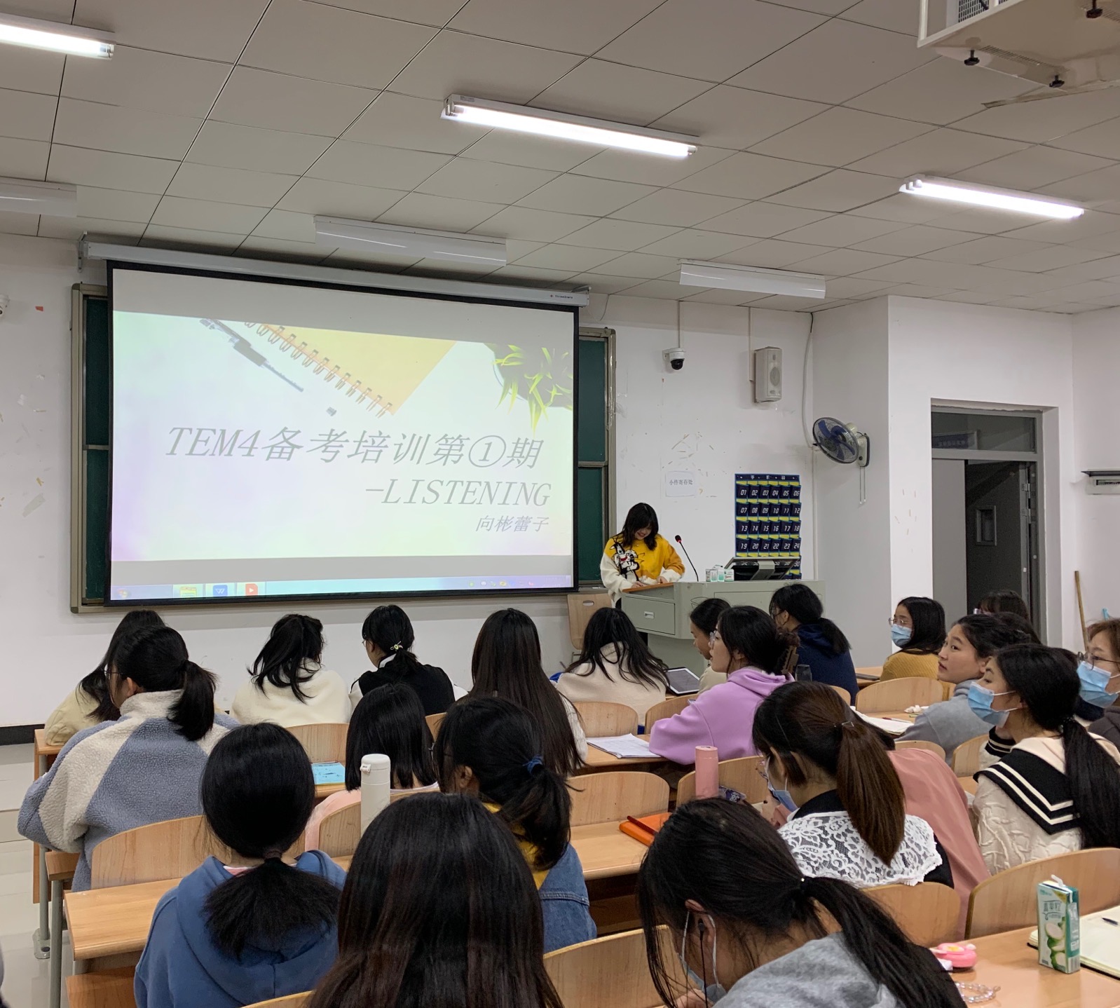 为了帮助星空(中国)官方英语、商务英语专业大二学生更好地迎接专四考试,人文学部英语组老师于4月1日晚上六点半开展了专四辅导讲座之听力篇,主讲人向彬蕾子老师,主要从题型分值、听力技巧和学习建议三个层面给学生们进行讲解。讲座生动实用,学生一致好评。衷心祝愿学生们都能取得满意的成绩!