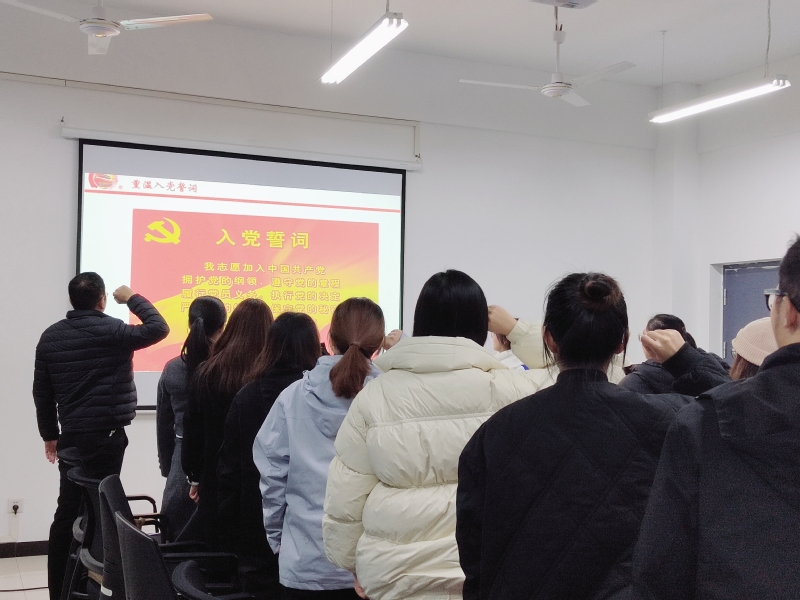 李进双、李潇晗同志宣读入党志愿。中国共产党来自人民、扎根人民、造福人民,以最广大人民根本利益为一切工作的根本出发点和落脚点。中国共产党从成立之初就担负起了为中国人民谋幸福、为中华民族谋复兴的历史使命。李进双同志表示:“未来我会恪守为人民服务的宗旨,弘扬伟大建党精神,在帮助他人的过程中传承党的初心使命,感受奉献的快乐。”李潇晗同志表示:“我的入党初心,是以身作则,起到模范带头作用,发挥党员的力量去影响他人、服务别人,全心全意为人民服务,努力为社会奉献力量和带来正能量。”